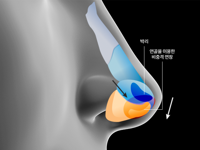 보형물의 위치를 피막보다 깊은 쪽으로 옮겨줄 수 있으며 코끝은 근막으로 코끝 피부를 보강해주는 것이 재발을 방지해줍니다.