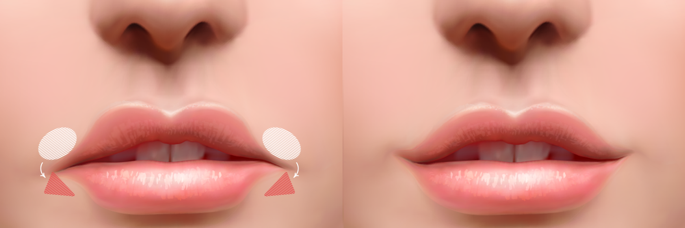 처진 입꼬리 끝을 자연스럽게 올려주어 부드러운 미소를 짓고 있는 듯한 입꼬리로 만들어 주는 수술입니다.