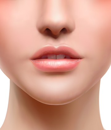 입꼬리의 위치를 살짝 미소 짓는 정도의 위치로 조절하며, 입술의 안쪽 잘 보이지 않는 부위에서 봉합합니다.