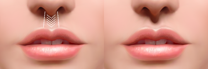 인중의 가운데 부분이 오목하게 패인 부분의 옆 능선이 밋밋한 경우에는 인중능선을 볼록하게 만들어 얼굴에 입체감을 주고, 오목하게 들어가야 하는 부분이 너무 평평한 경우에는 오목하게 만들어 부드러운 인상으로 개선합니다.